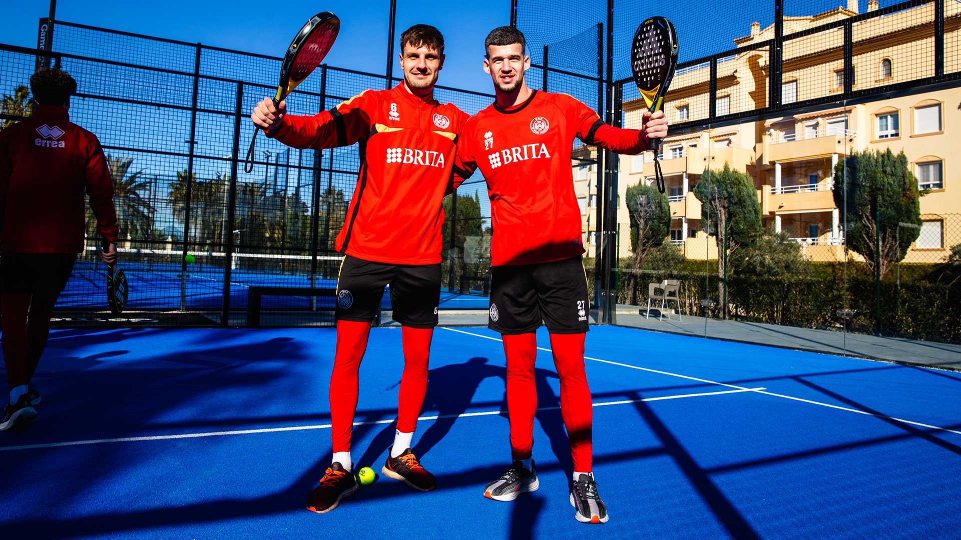 So ging es heute erstmals in Oliva nicht auf den Fußballplatz. Stattdessen trafen sich die Profis zu einer regenerativen Einheit auf der nahegelegenen Padel-Anlage. Auf gleich sieben Plätzen parallel wurde im Zwei-gegen-Zwei-Modus mit ständig wechselnden Partnern kurze Matches ausgetragen. Nach jedem Spiel rückte dabei das Siegerteam einen Court nach oben, das Verliererteam einen Court nach unten. Anschließend wurden die Duos innerhalb des Zwei-gegen-Zwei-Duells wieder neu gemischt, sodass immer neue Kombinationen entstanden.